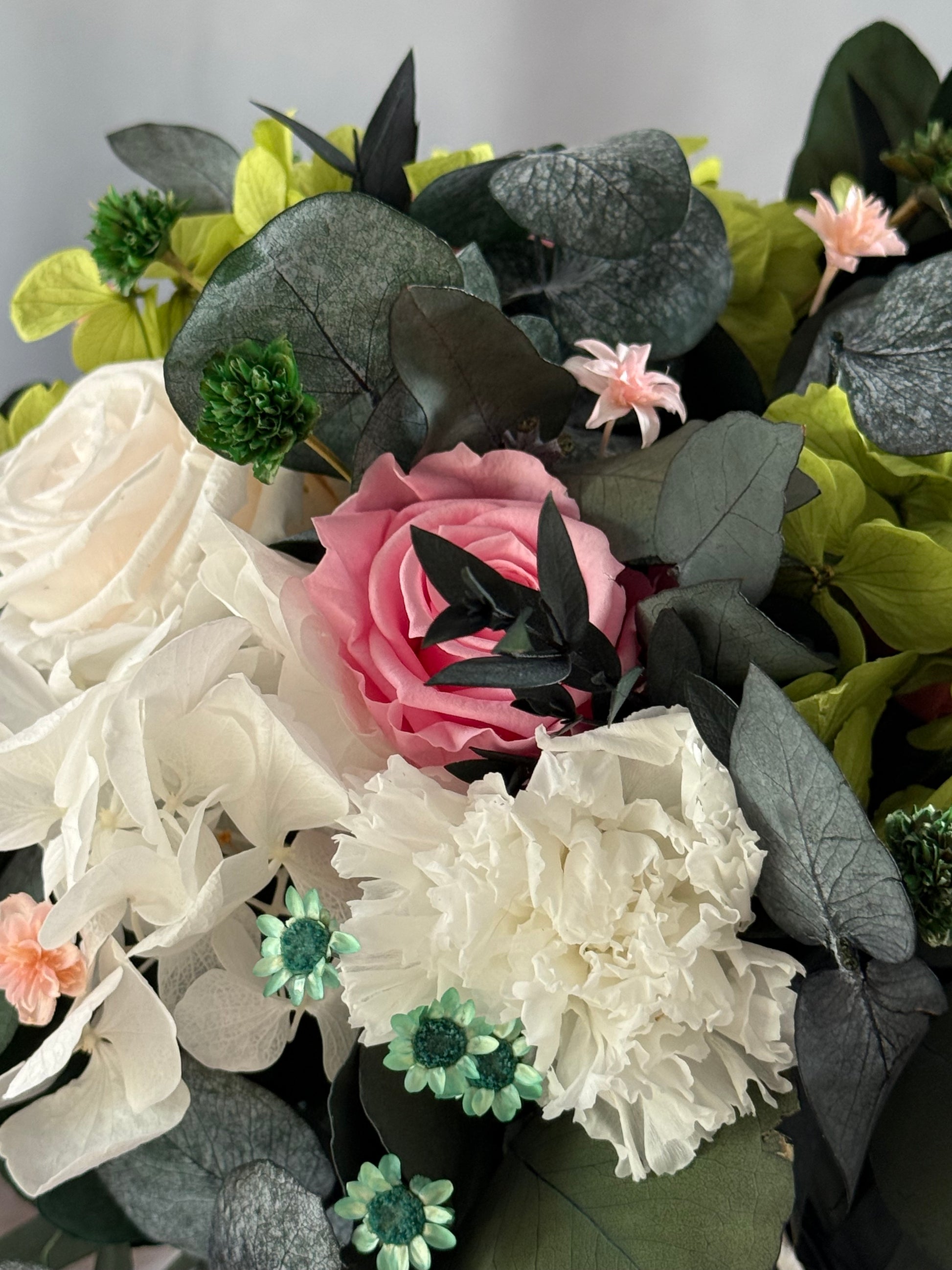 Due to the natural nature of preserved flowers, each arrangement is unique—slight variations in shape and tone make your piece truly one of a kind.