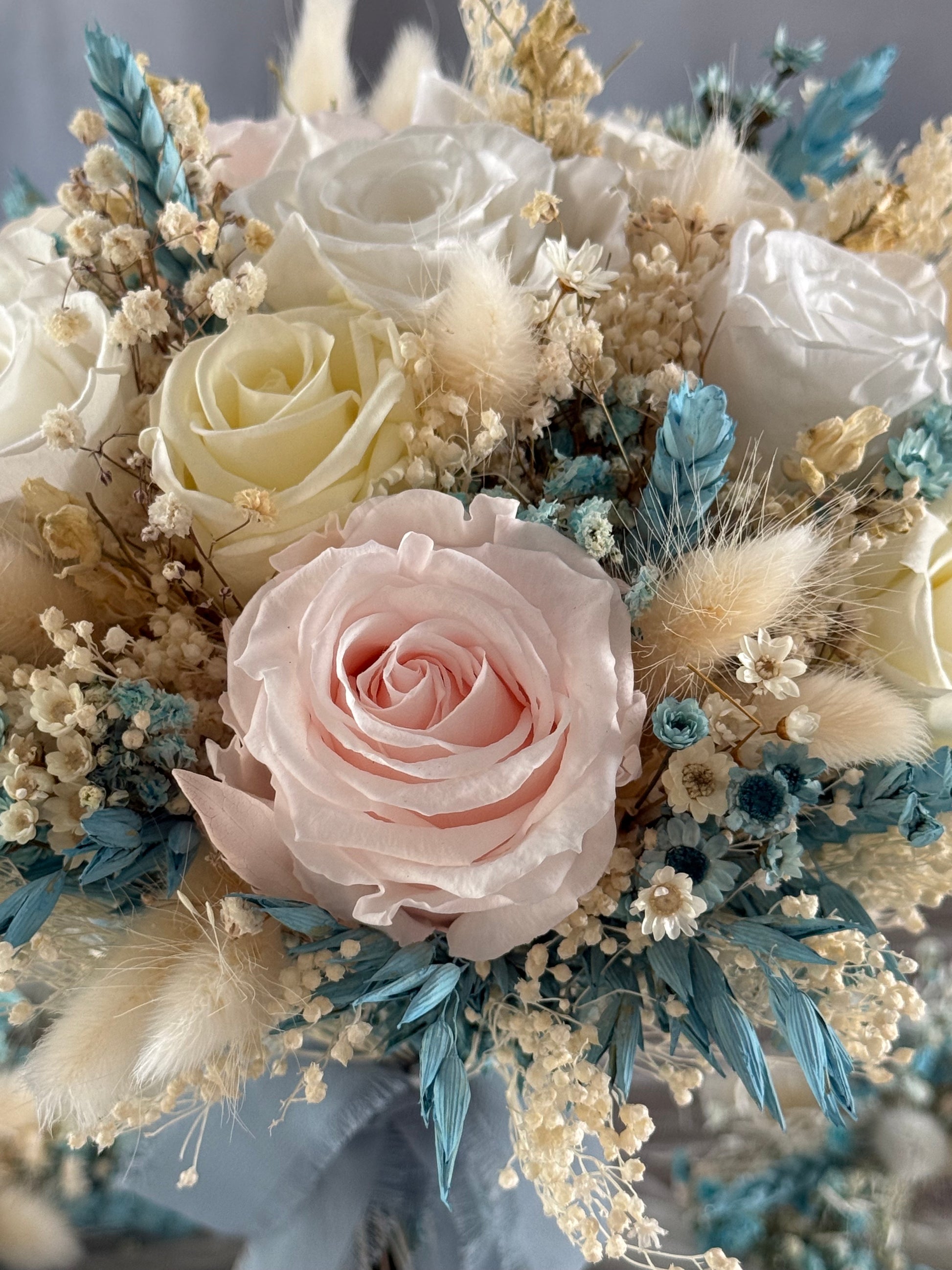 Debido a la naturaleza natural de las flores preservadas, cada arreglo es único : ligeras variaciones en la forma y el tono hacen que su pieza sea verdaderamente única.