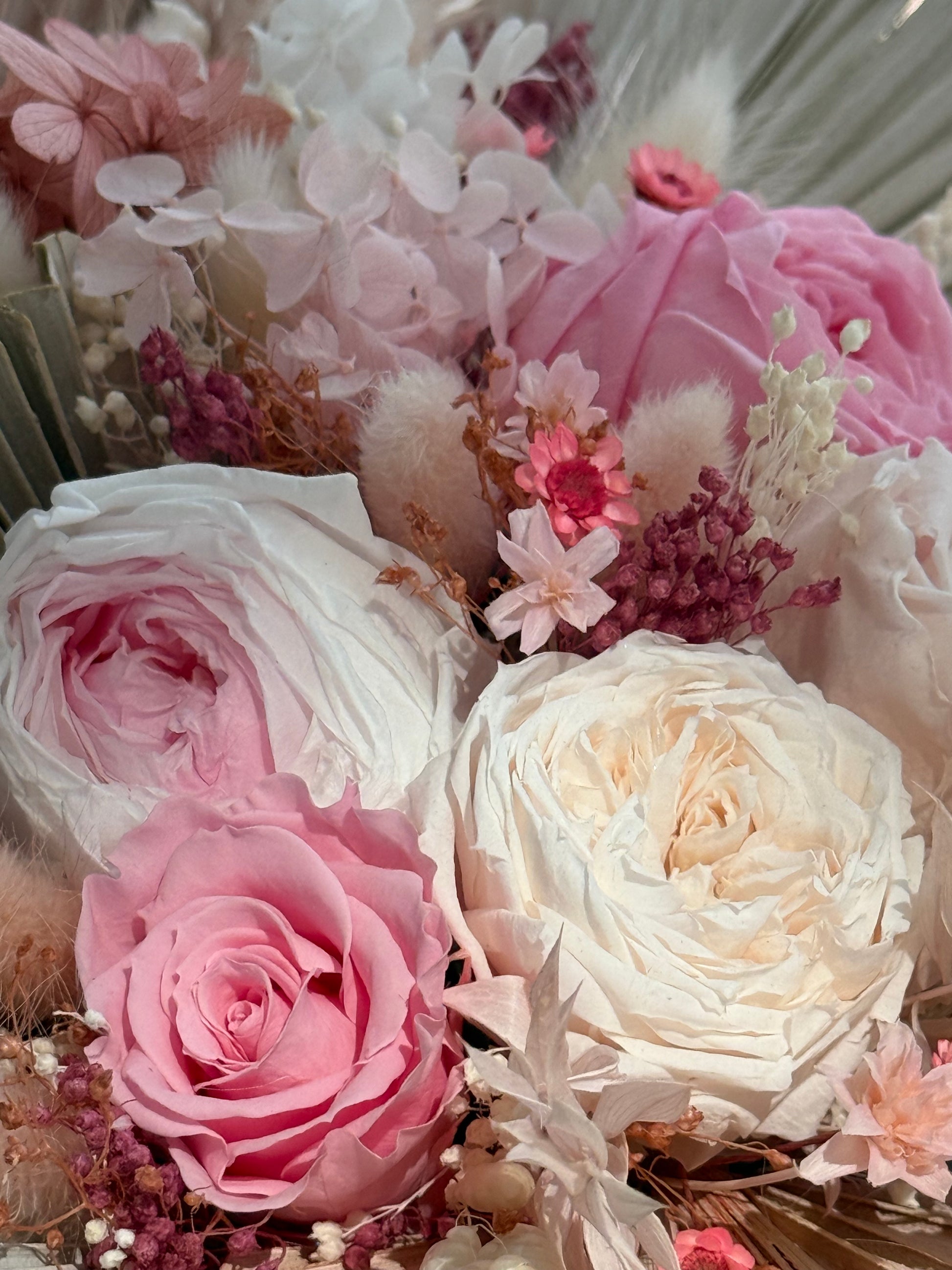 Due to the natural nature of preserved flowers, each arrangement is unique—slight variations in shape and tone make your piece truly one of a kind.