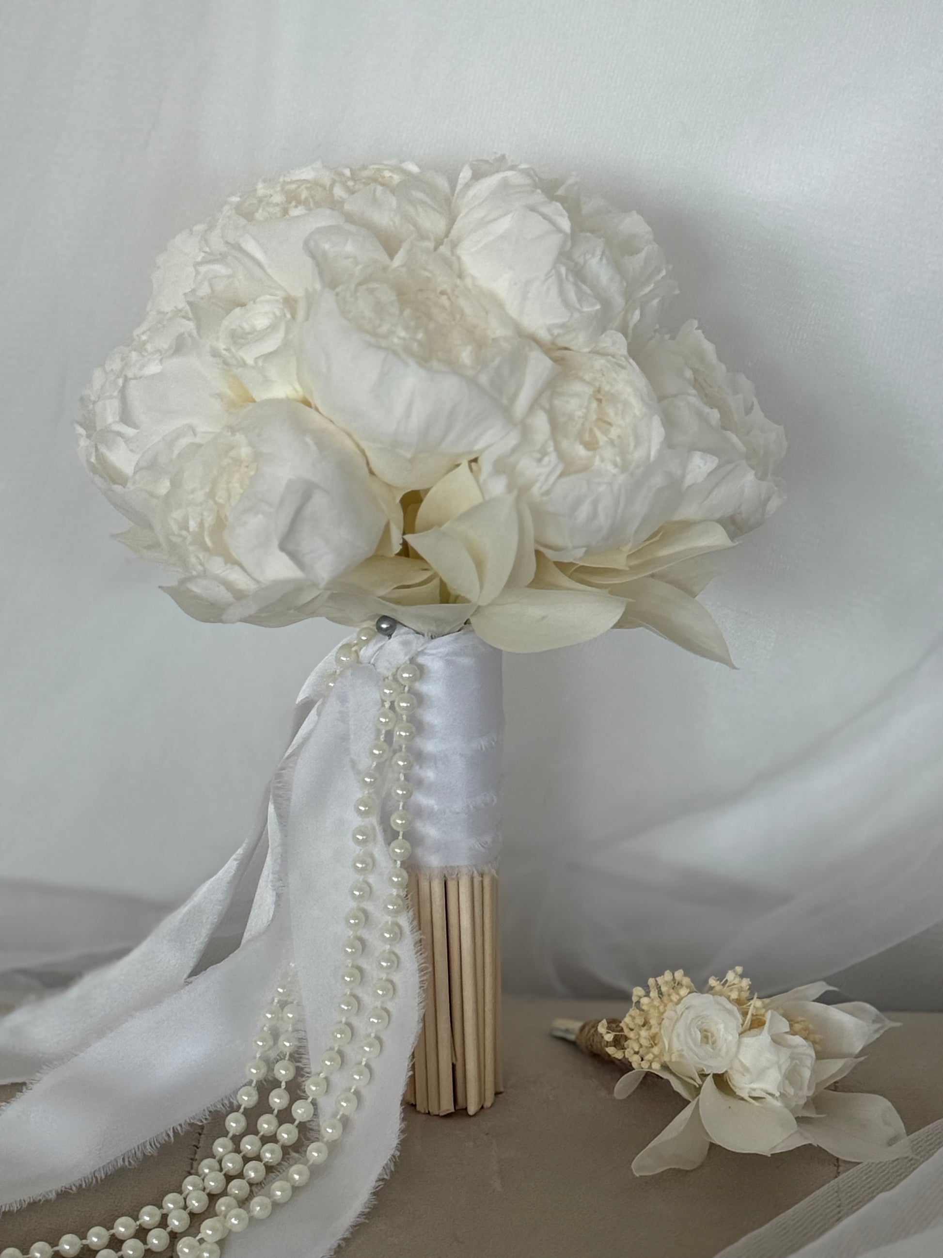 Altura total: 36cm Diámetro: 25cm Boutonniere: H12cm D9cm